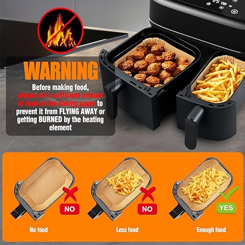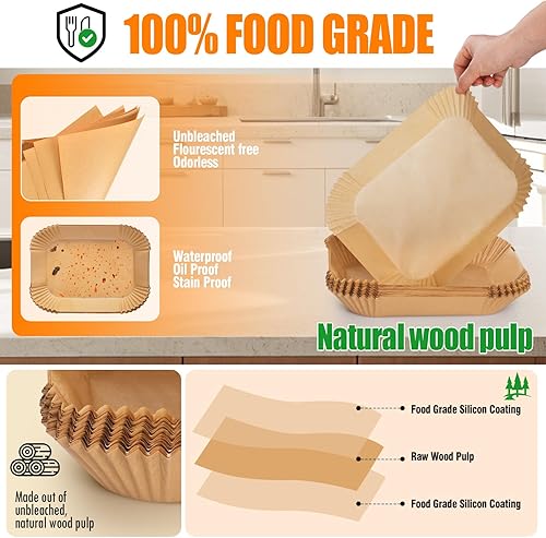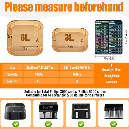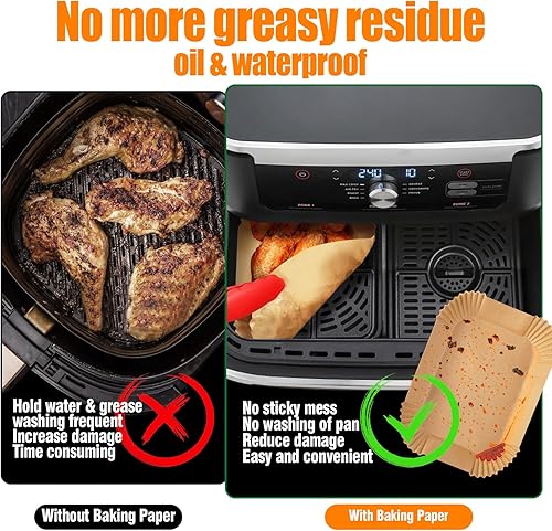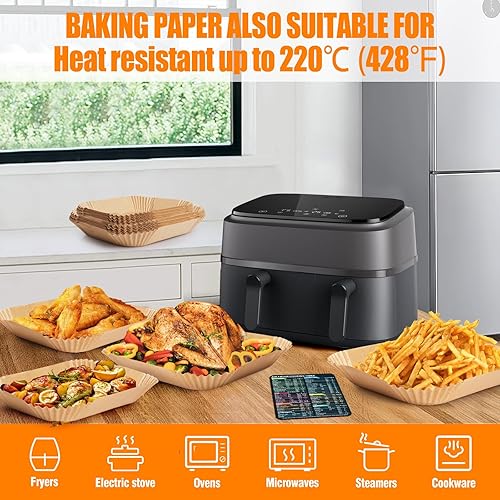 Anhow Papier Cuisson Air Fryer, 200 PCS Papier Sulfurisé pour Air Fryer Philips/Tefal Easy Fry Food-Grade BPA gratuit, 100 PCS pour 5,2L+ 100 PCS pour 3,1L Papier pour Air Fryer pour 3,1-5,2L Friteuse