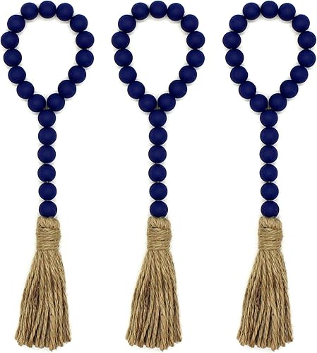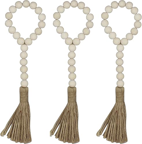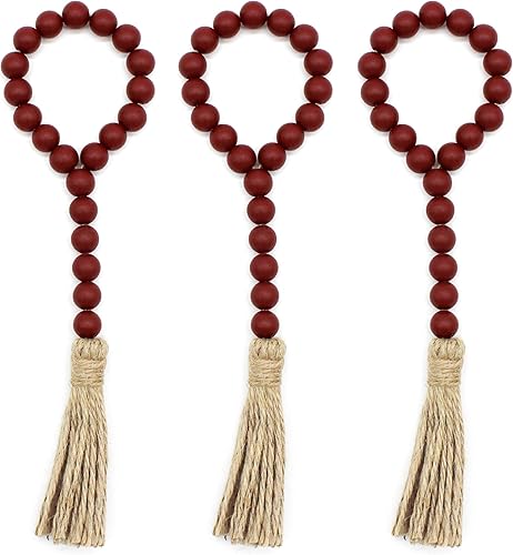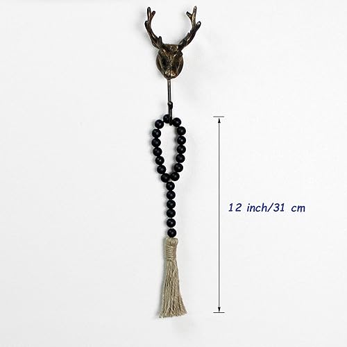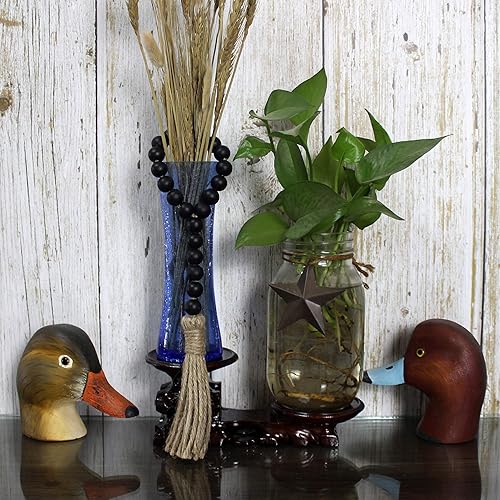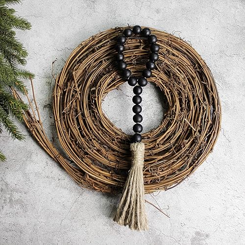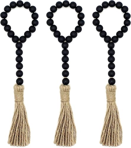 CVHOMEDECO. Guirlande de Perles de Bois avec Glands 3 PCS Farmhouse Rustic Wooden Prayer Bead String Wall Hanging Accent for Home Festival Decor. Noir
