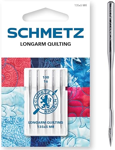 SCHMETZ | 5 Aiguilles pour machines à coudre | Quilting à Bras long | 135X5 MR | Grosseur 100/16 | Convient pour le quilting avec des machines spéciales à bras long