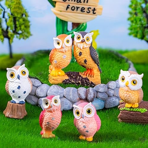 ZXYZLJJD Lot de 6 figurines de hiboux miniatures - Décoration de jardin pour terrariums et décoration d'intérieur