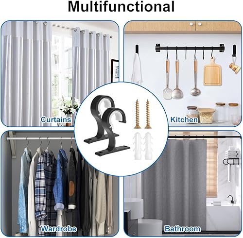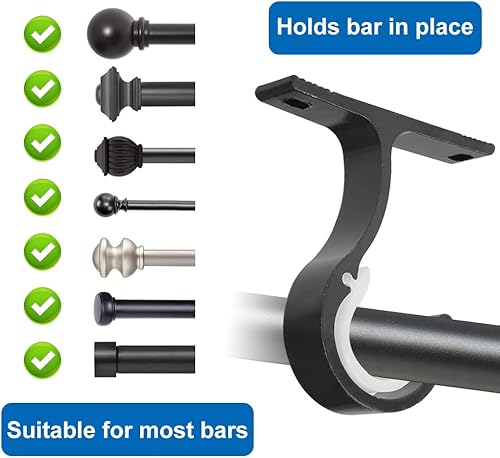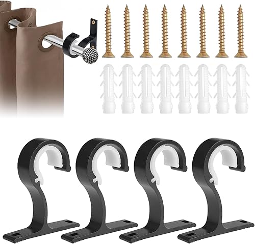 4 Pièces Supports Rideau Plafond 25-28mm Support Tringle Rideaux Plafond Avec Vis, Alliage D'Aluminium Support Rideau Plafond, Support de Tringle à Rideaux pour Les Plafonds ou Les Murs (Noir)