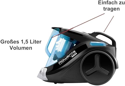 Rowenta Aspirateur sans sac (très faible consommation d'énergie à haute puissance 750 W, volume de poussière 1,5 l, accessoires intégrés, avec brosse turbo supplémentaire, aspirateur traîneau sans