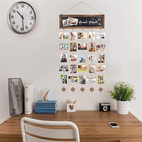 Cadres photo muraux multiples, Cadre photo collage, Cadre photo collage en bois, mur photo en bois 3 toiles et 30 pinces en bois, grand collage photo Accrocher, DIY cadre photo, cadeaux photo