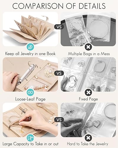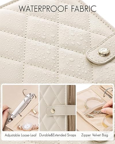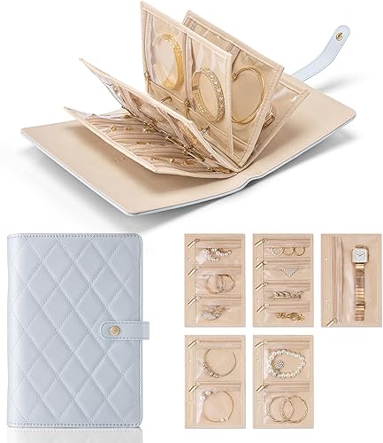 Vlando Boîte à bijoux de voyage, organisateur de bijoux pliable, étui à bijoux avec 5 pochettes à bijoux en velours pour collier, boucles d'oreilles, bracelets, bagues, broches, S (blanc)