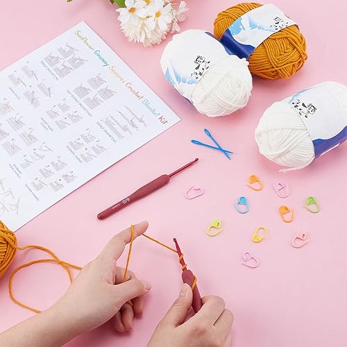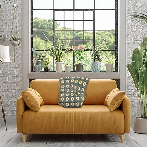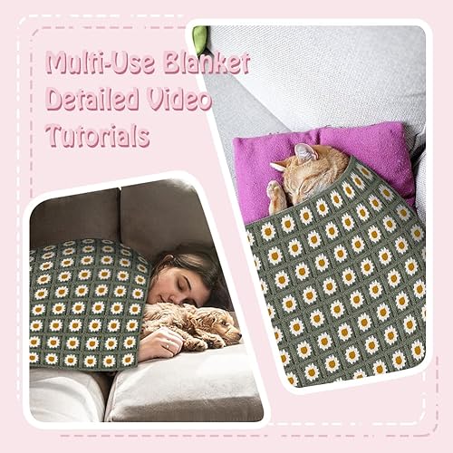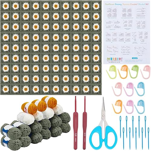 WEBEEDY Kit de Couverture au Crochet pour Débutants Kit de Crochet de Carrés Granny Daisy pour Adulte avec Tutoriels Vidéo Étape Par Étape Fil à Aiguille à pour Tricot Facile (Vert),90x70cm