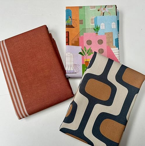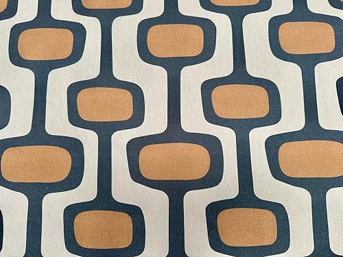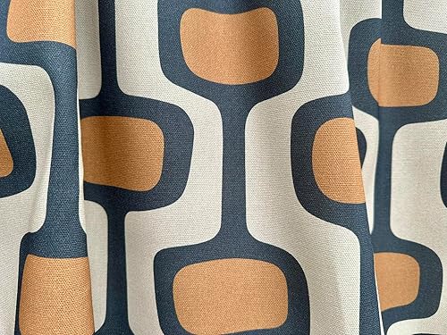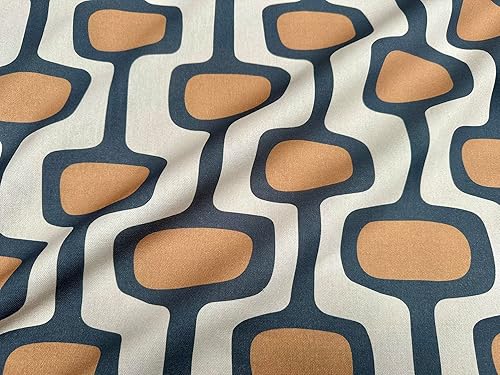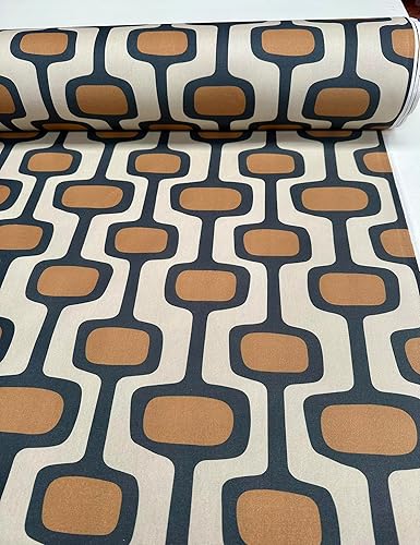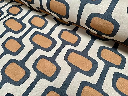 Tissu en coton à motif géométrique rétro des années 70 - Tissu d'ameublement - Terre cuite et crème - 140 cm de large - Vendu au mètre