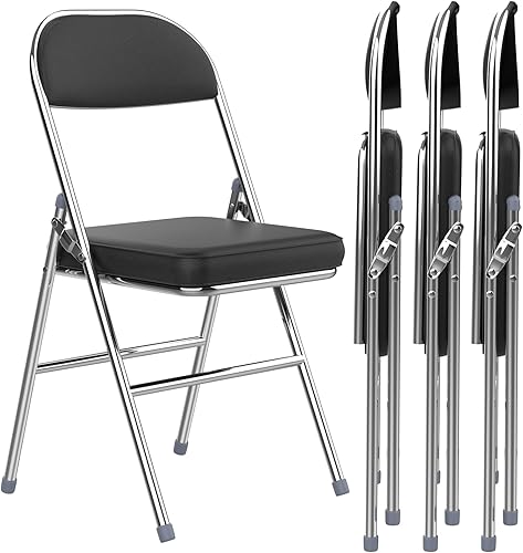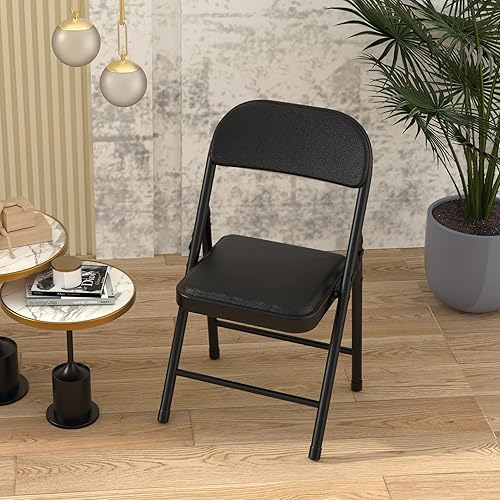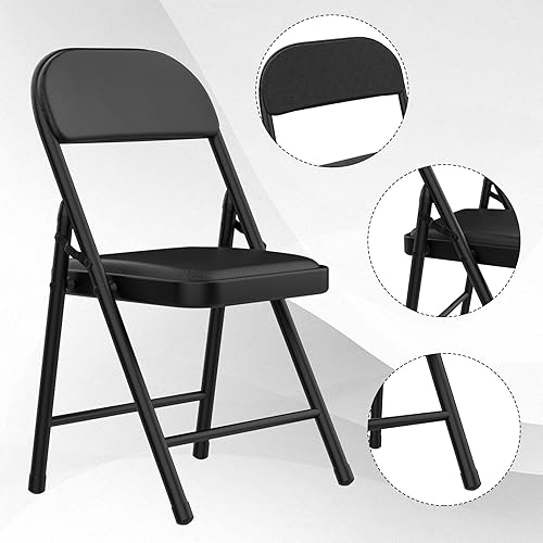 PIPIPOXER Lot de 4 chaises Pliantes en Cuisine avec Cadre en métal, siège et Dossier rembourrés - pour la Maison, Le Bureau, la Chambre d'amis, la Salle de conférence