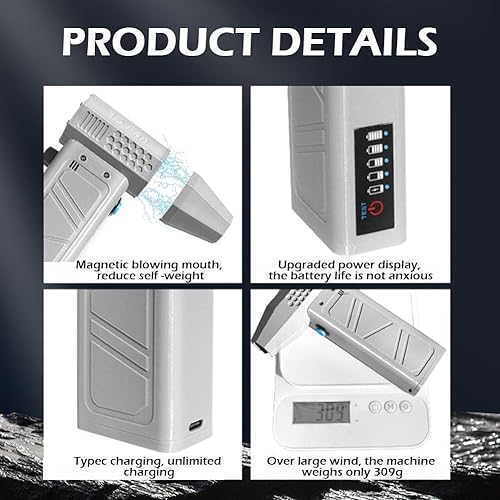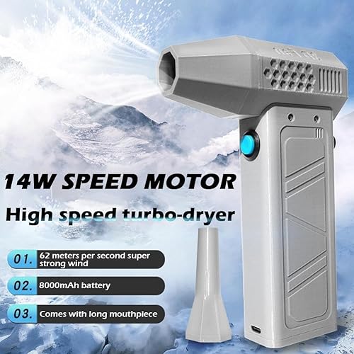 Mini ventilateur de turbo-séchage, moteur sans balais, ventilateur portable 62 m/s, affichage de la puissance avec charge turbo de type C