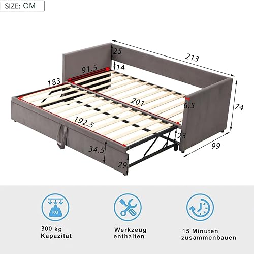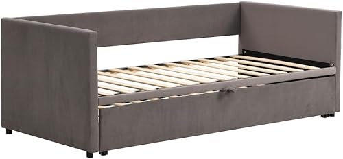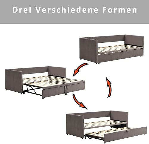 Zubaliya Lit rembourré, canapé-lit gigogne 90/180 * 200 cm avec sommier à Lattes, lit Multifonctionnel en Tissu Velours Doux pour la Peau, Gris (Gray + Upholstered + 90cm*200cm)