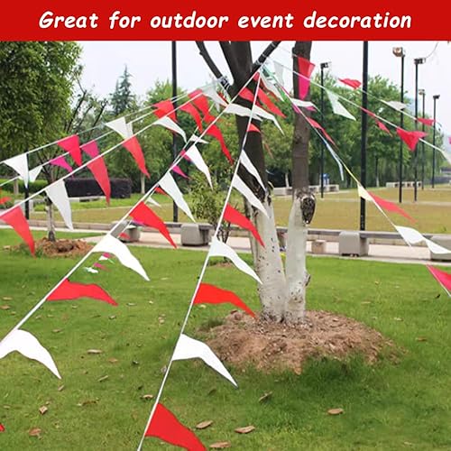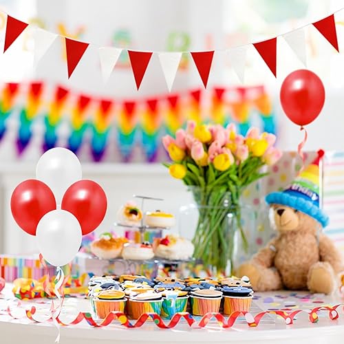 Banderoles Rouges et Blanches de 40 m et 10 Ballons, bannière de Drapeau Triangulaire, réutilisable Double Face, décoration de fête, Convient pour Jardin extérieur, fête d'anniversaire, Noël