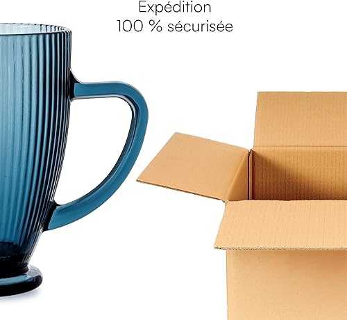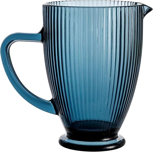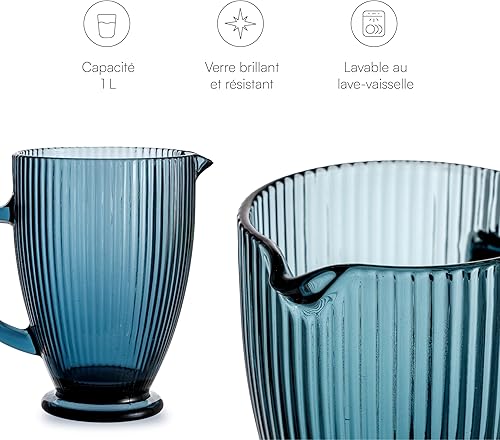 Baroni Home Carafe en verre avec détails en relief, pichet avec poignée, design moderne, carafe anti-goutte, facile à nettoyer, pour boissons chaudes et froides, 1 L, 20 x 13 x 19 cm, bleu