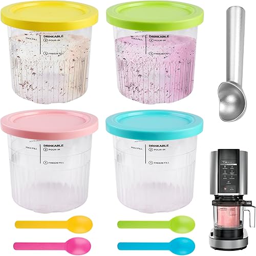 BORDEAG Lot de 4 récipients pour crème glacée Ninja Creami Deluxe, pour crème glacée, remplacement pour Ninja Creami Deluxe NC501EU NC500EU, accessoires Creami Deluxe