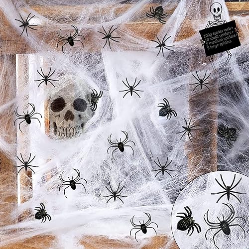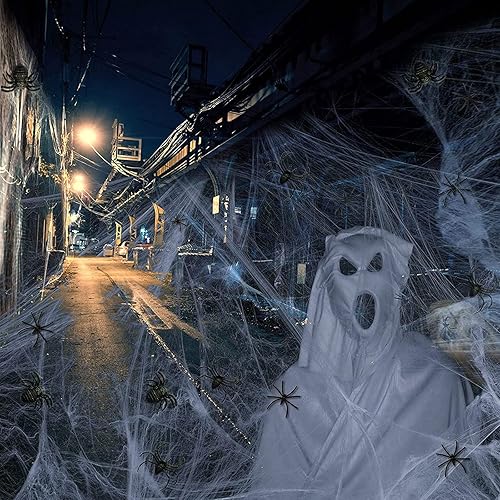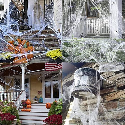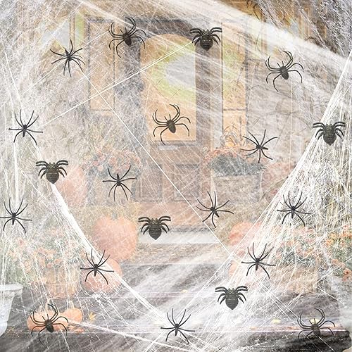 Toile d'araignée pour Halloween, avec 20 Fausses araignées, Toiles d’araignée factices pour décoration d'halloween effrayante,Halloween araignée