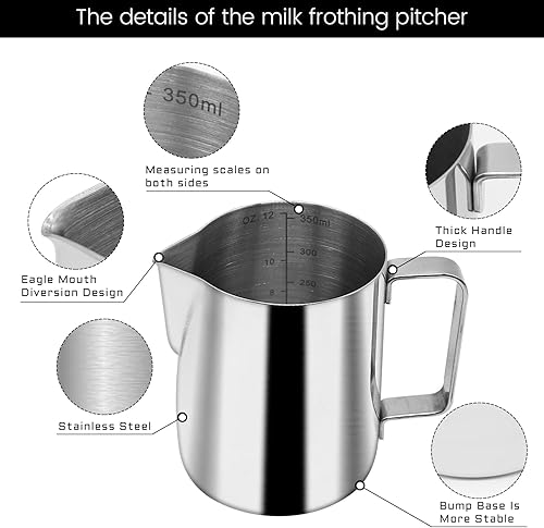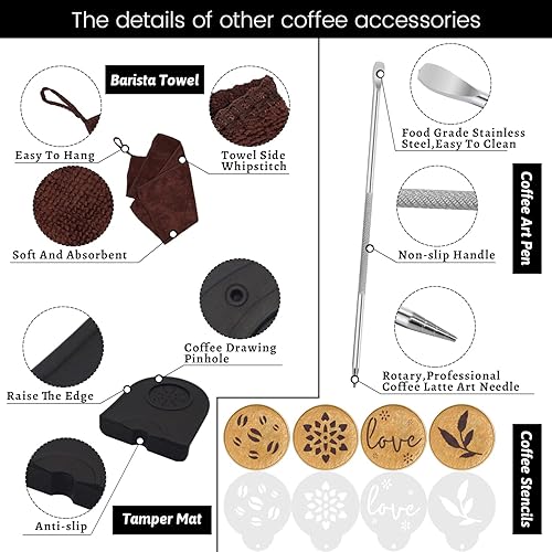 Ezebesta Ensemble de tamper à café de 51 mm pour machine portafiltre, presse à expresso en bois avec tapis de tampeur, pot à lait (350 ml), serviette de barista