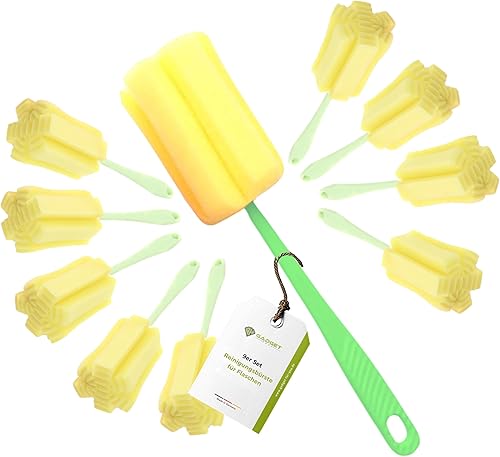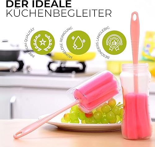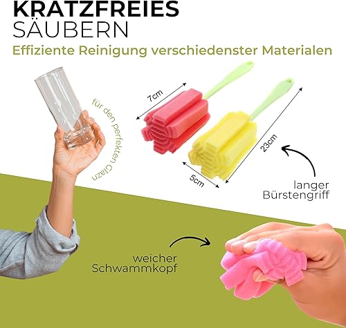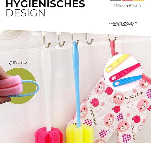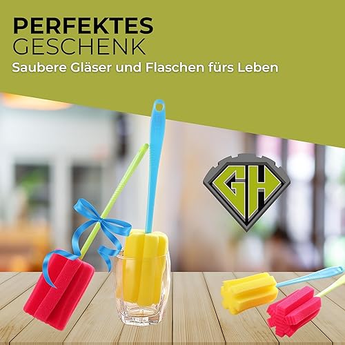 Gadget-Hero Lot de 6 brosses de nettoyage pour biberons – Éponge à vaisselle pour verres – Nettoyeur de bouteilles anti-rayures avec long manche – Éponge pour biberons – Nettoyant pour biberons
