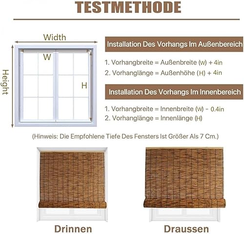Stores Enrouleur en Bambou 50 60 90 100 110 130 140 160cm Largeur Stores À Rouleaux Romains, Store Roulant en Bambou pour Intérieur/extérieur Balcon Jardin