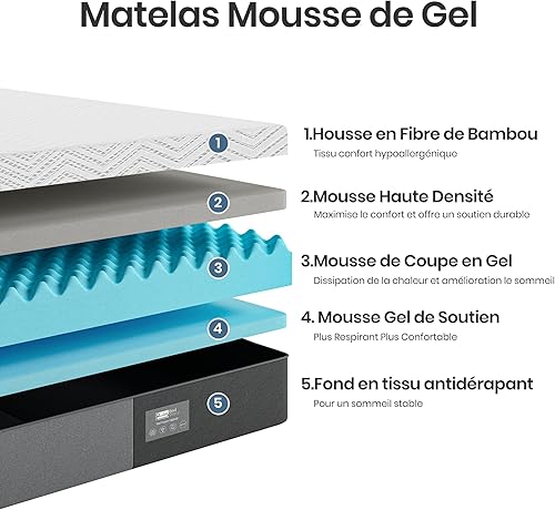 BedStory Matelas 90x190 25cm Epaisseur, Matelas 1 Personne Mousse de Gel et Bamboo Charcoal, Respirant et Hypoallergénique, 7 Zones Ergonomique Confort avec Housse Amovible et Lavable, Soutien Optimal
