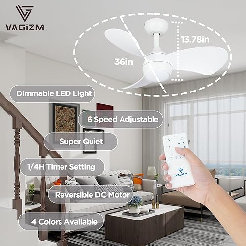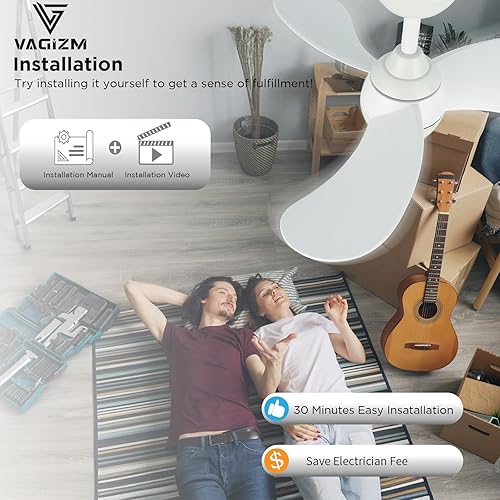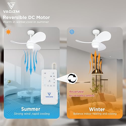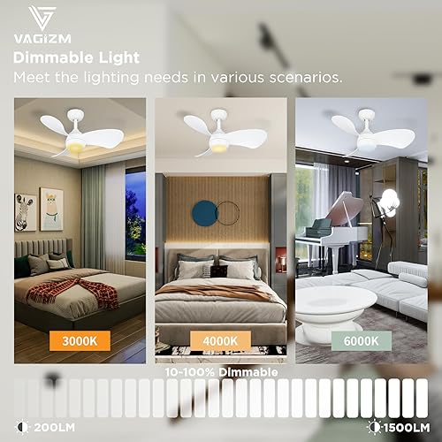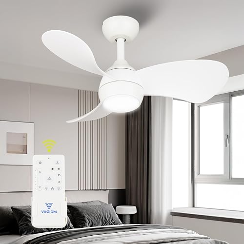 Vagizm Ventilateur Plafond avec Lumiere pour Chambre:76CM Ventilateur Plafond Silencieux - 6 Vitesses Télécommande et LED Dimmable - Convient pour l'hiver et l'été - Blanc mat 3 pales - 220 à 240V