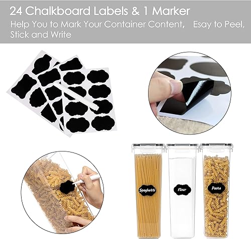 Vtopmart 2.8L boîtes de Conservation Alimentaire sans BPA de Nourriture en Plastique avec Couvercle,Ensemble De 4+24 Étiquettes,pour Céréales,Farine(Noir)