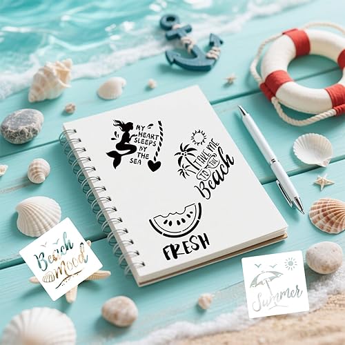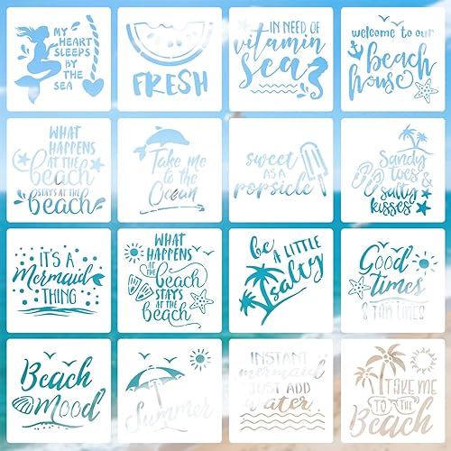 Tinoaly 16 Pièces Pochoirs à Thème Plage pour Peinture, 20,5cm Plastique Réutilisable Pochoirs Océan Parfait pour L'art de Plage DIY D'été Sur Bois Tissu et Murs