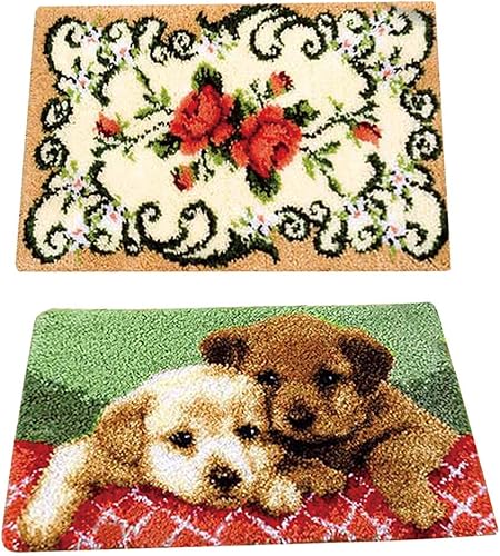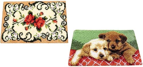 Tubayia Lot de 2 tapis à nouer motif fleurs chien point de croix DIY tapis bricolage kit cadeau