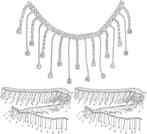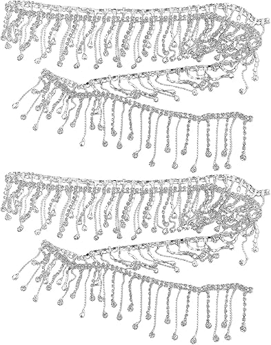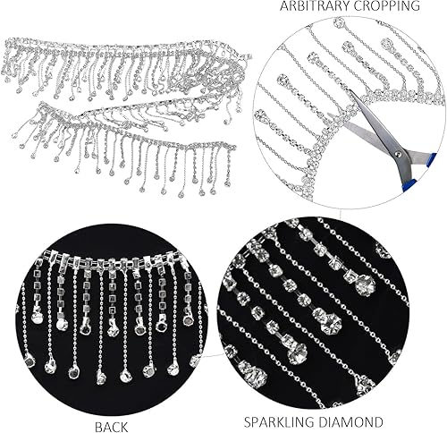 2 chaînes d’accessoires de gland, garniture de gland, garniture de gland argentée, chaîne de strass, garniture de gland de strass, garniture de diamant pour la robe