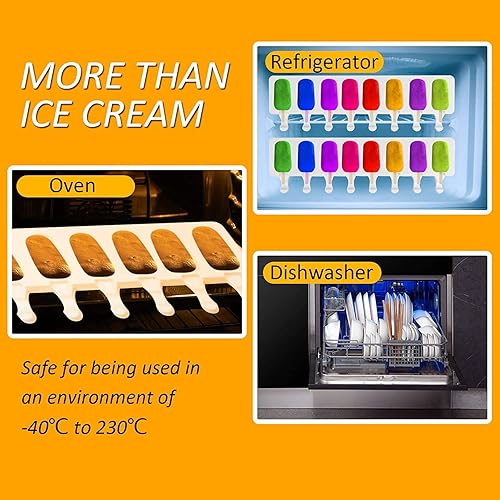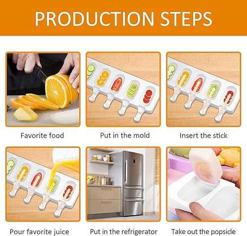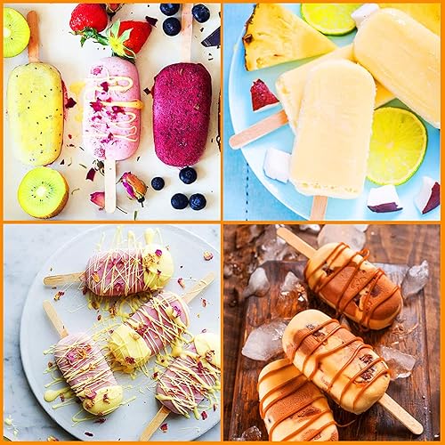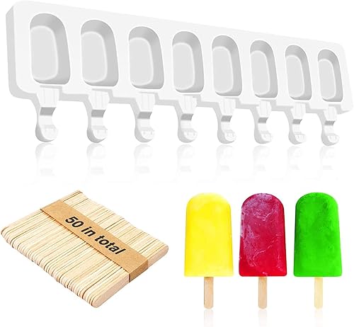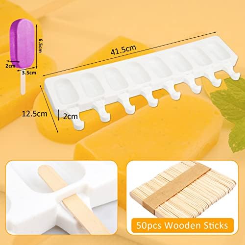 Moule Glace 8 Cellules, Moule à Glace en Silicone Moulle Magnum Cake pour Réutilisables avec 50 Bâtonnets en Bois, Moule à Popsicle pour Maison Dessert, Jus de Fruits, Yoghurt, Crème Glacée