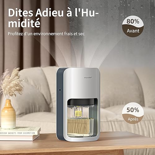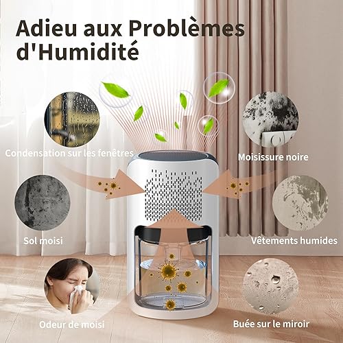 OMISOON Deshumidificateur d air 1200ml, Déshumidificateur Electrique avec éclairage LED 7 couleurs, Dégivrage Automatique, Silencieux, Portable Compact Déshumidificateur pour la Maison, Chambre, Bain