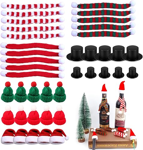 40 Pièces Mini Bonnet de Noël Petit Bonnet de Noël Bonnet de Noel Écharpe pour Bonhomme De Neige Bonnet Noel Bonnet pere Noel pour Décorer le Petit Arbre de Noël Bonhomme de Neige père Noël Etc