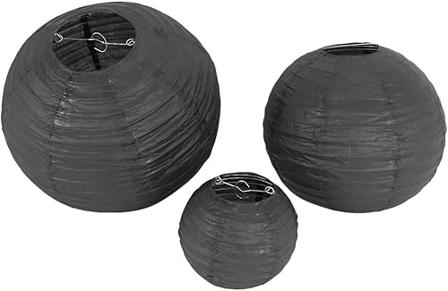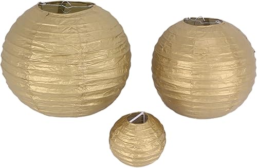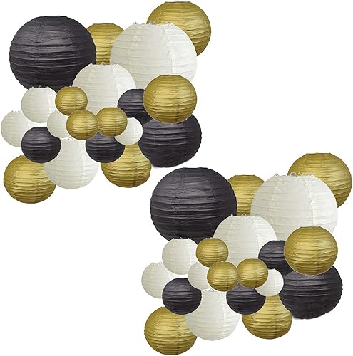 Feriany Lot de 40 lanternes en papier décoratives rondes japonaises/chinoises dorées noires pour mariage en extérieur