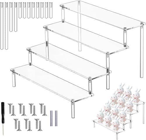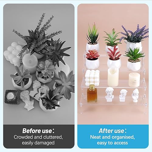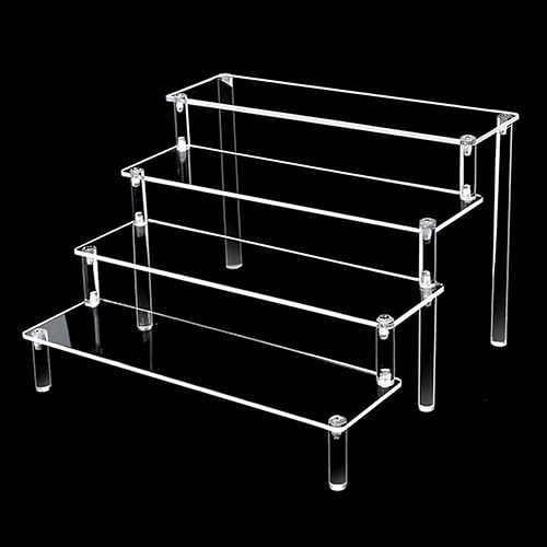 HMIEPRS Présentoir Acrylique 4 Niveaux, Rangement Parfum Présentoir Marches Transparent, Organisateur en Acrylique pour Figurine Parfums Poupée Cupcake Cosmétiques Bijoux Desserts (30x27x20 cm)