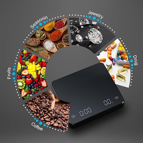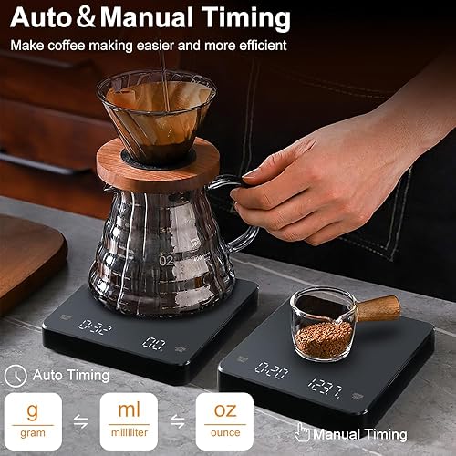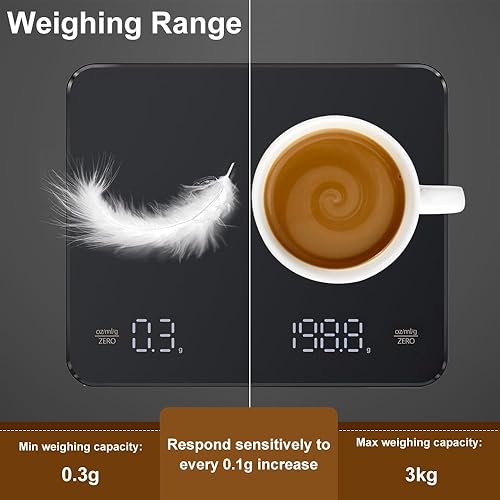 OBEST Balance à Café Numérique avec Minuterie,3kg/0.1g Balance à Café Rechargeable de Haute Précision,Mini Balance de Cuisine Électronique Portable avec Affichage LED et Minuterie Automatique