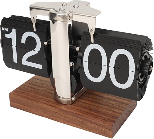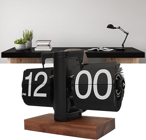 Bewinner Horloge de Bureau Rabattable de Style Rétro, Horloge de Table de Bureau à Bascule Automatique, Affichage Numérique Mécanique Classique Alimentée par Batterie, 12 Heures, (Black)