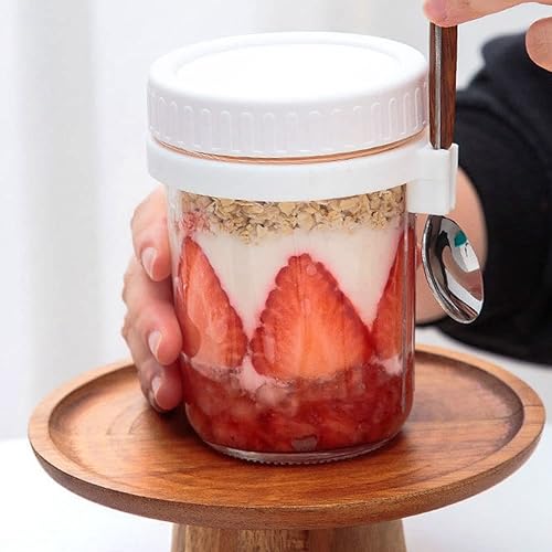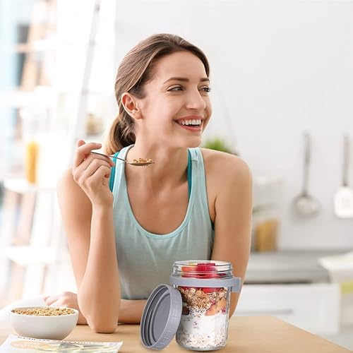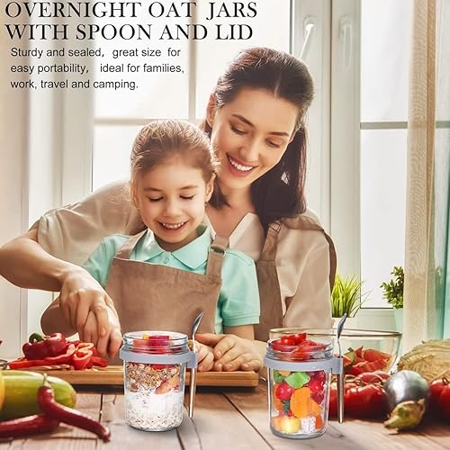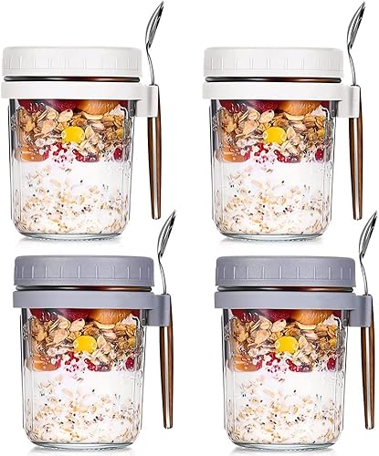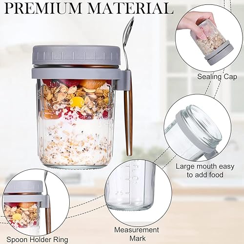 Qusedwey Lot de 4 pots à avoine Overnight avec cuillères Airtight - Avec marques de mesure
