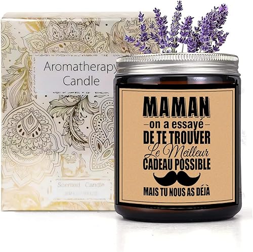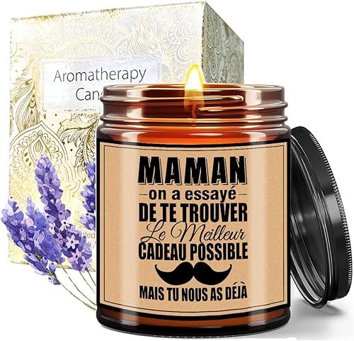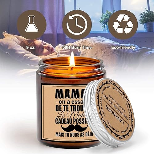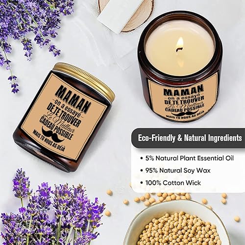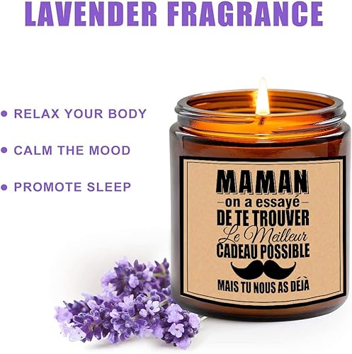 Bougie Parfumée Lavande Naturelle Bougie d'Aromathérapie à la Cire de Soja Bougies Cadeau pour Fête des Mères Cadeau Maman Anniverssaire Femme Bénédiction, Purification, Relaxation 220g