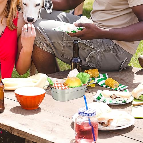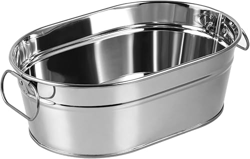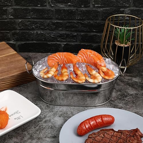 Vaguelly Seau à boisson ovale galvanisé vieilli pour fruits de mer, poulet, refroidisseur de boisson portable