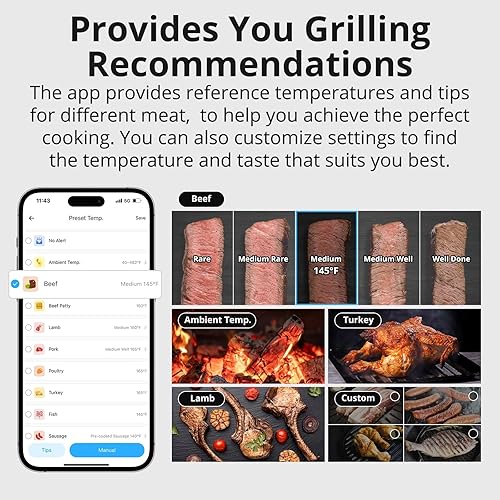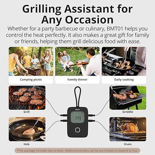 SONOFF Thermomètre Cuisine, LCD Lectures Instantanées Thermometre Viande avec Sondes Doubles de 15cm, Aimant, Températures Prédéfinies, Minuteries et Alarmes, Convient pour la Cuisson, la Viande, BBQ