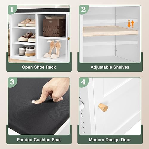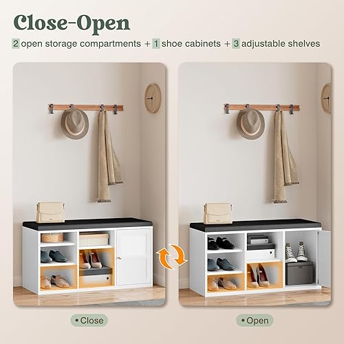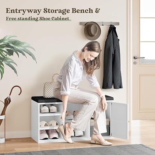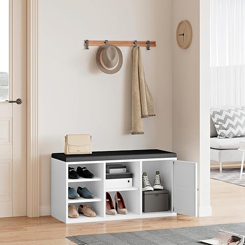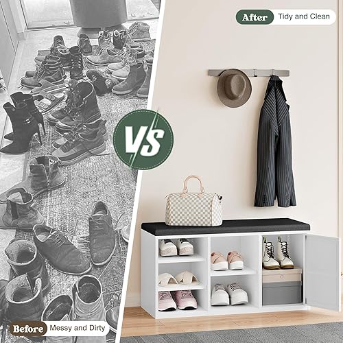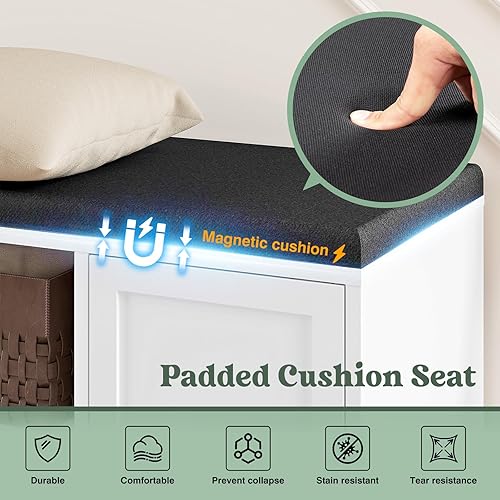 Sightlife Meuble à Chaussures,Banc de Rangement avec Coussin Rembourré,2 Compartiments,pour Salon, Entrée, Chambre,Capacité de Charge 150 kg 100 * 50 * 40cm Blanc