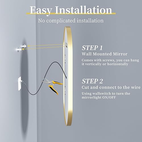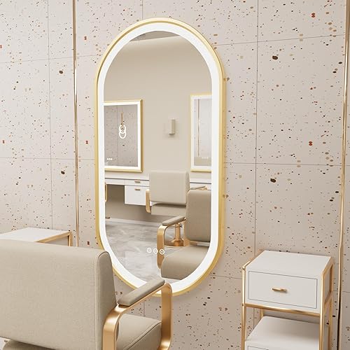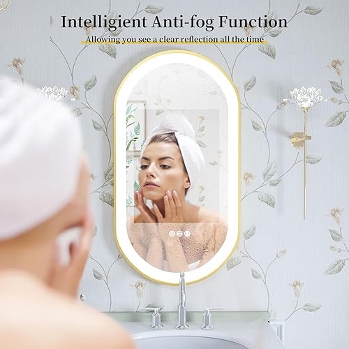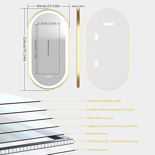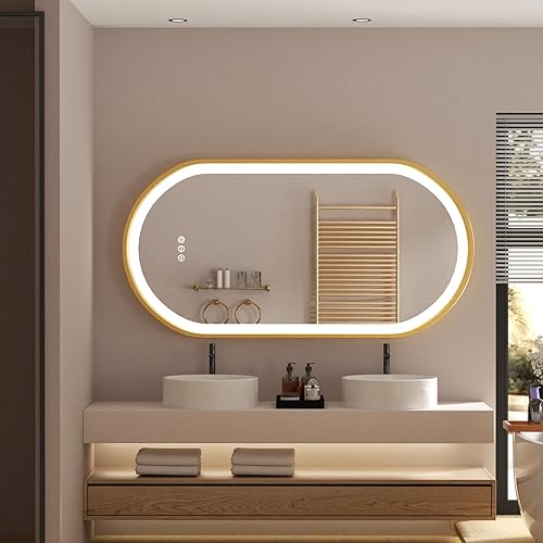 LUVODI Miroir Salle de Bain Ovale: 120x60cm Miroir Lumineux Tactile 3 Couleurs Miroir Connecté avec Éclairage Intégré Miroir LED d’Or Brossé Mural Antibuée IP56 Mémoire avec Prise Horizontal/Vertical