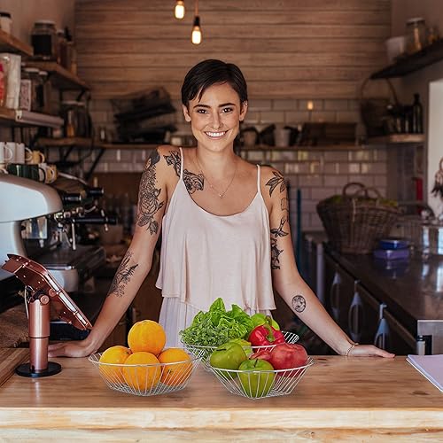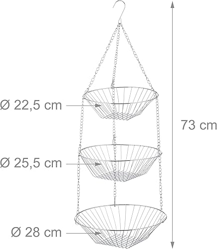 Relaxdays Panier suspendu 3 étages,corbeilles accrochées fruits, au plafond, peu de place dans la cuisine, acier,argent
