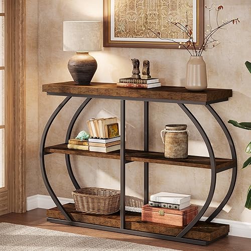 Tribesigns Table console industrielle à 3 niveaux avec cadre en métal arqué et étagères de rangement pour salon, couloir, marron rustique de 104,9 cm