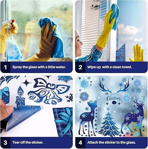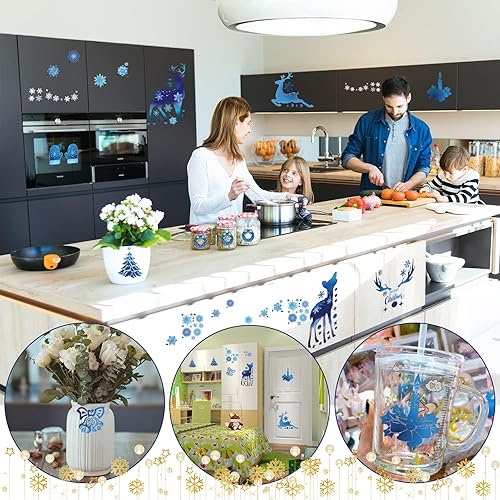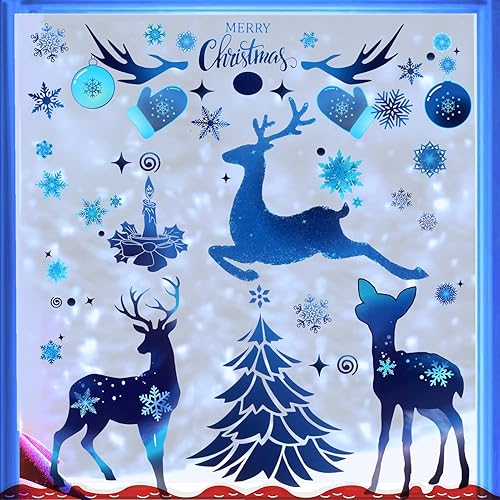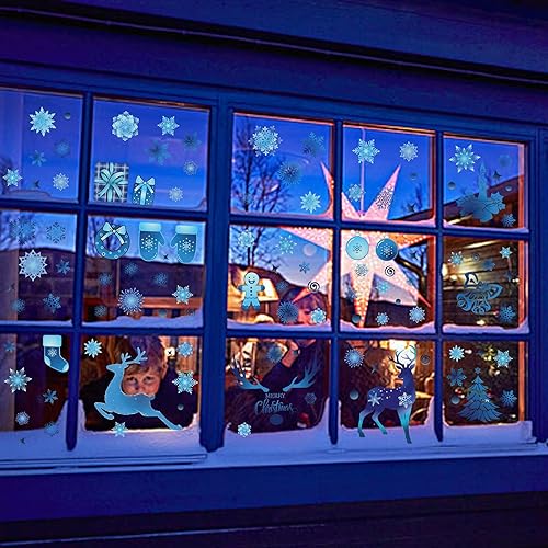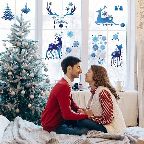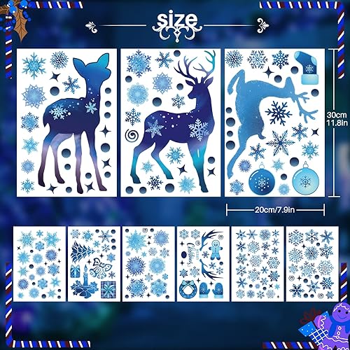 Moinkerin Stickers Noël Fenêtre - 213 Pièces 9 Feuilles Wapiti Autocollant pour Décoration des Fenêtres, Vitrines et Fêtes de Noël