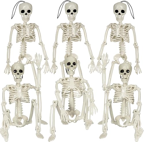 Lot de 6 mini squelettes d'Halloween 40,6 cm avec articulations mobiles mobiles, squelette effrayant pour jardin, pelouse, maison hantée, cimetière