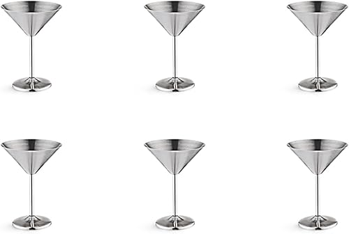 TsoLay 6X Verre à Cocktail Martini en Acier Inoxydable Verre à Vin à Base élevée Verre à Vin Incassable Barre en Métal Verre à Champagne Argent