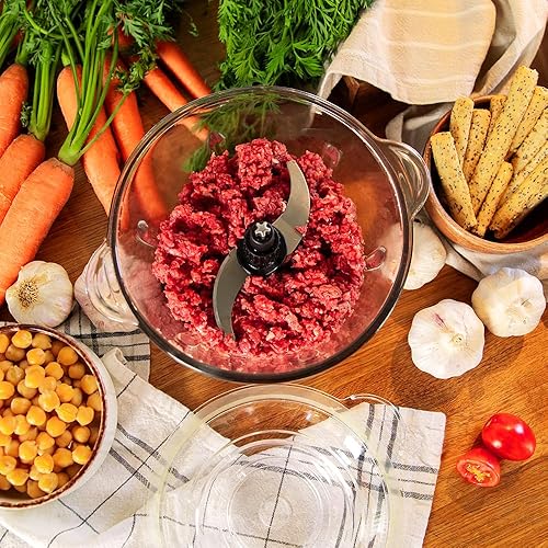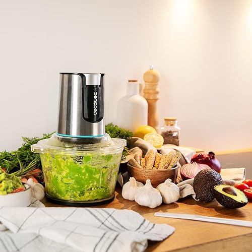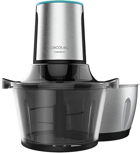 Cecotec Hachoir ChopBeat 2000 Vindaloo Glass, 500W de Puissance, Hache, Tranche et Coupe, Lame à 4 Branches en Acier Inoxydable, 2 Vitesses, Bol en Verre de 500g