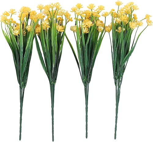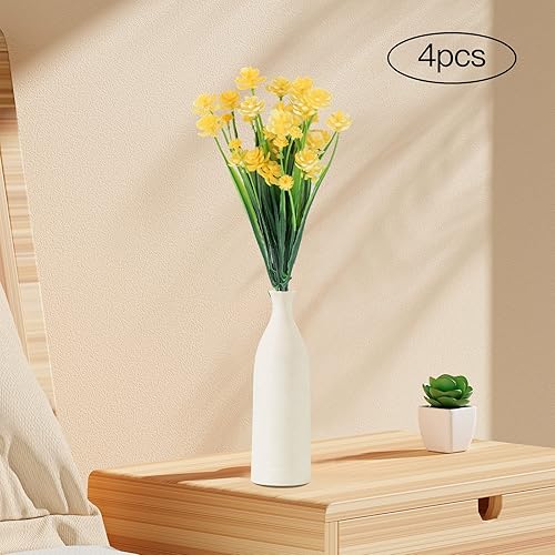 BAOCHADA Lot de 4 fleurs artificielles de 33 cm - Fleurs d'hortensia artificielles - Décoration pour mariage, arrangements floraux, bricolage, centres de table, fête, maison, bureau - Jaune rêvé