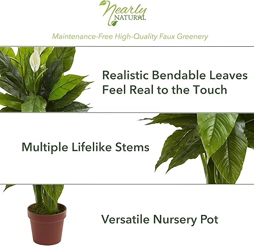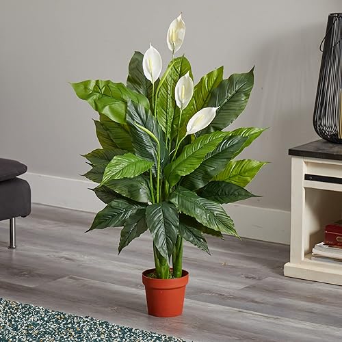 Nearly Natural Spathiphyllum Plantes artificielles en Soie Vert 106,7 cm