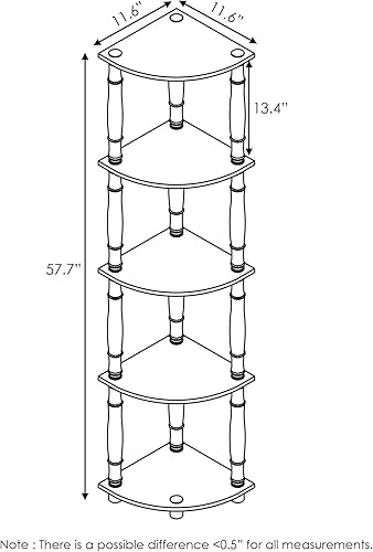 Furinno Turn Étagère Polyvalente à 5 Niveaux pour Présentoir d'Angle avec Tubes Classiques, Expresso, Bois, Espresso/Noir, One Size