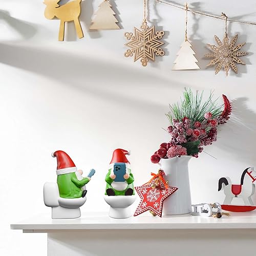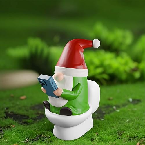 Cuayaes Statue Jardin Exterieur Figure de Nain de Jardin Humour Assis sur Les Toilettes Jouant au Téléphone Figurine d'art en Résine Imperméable pour Terrasse, Pelouse, Interieur Décoration