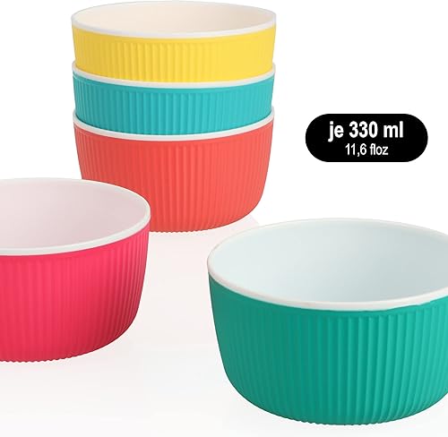 com-four® 5x bols à muesli - bols à collation en plastique - contenants réutilisables allant au lave-vaisselle - bols à salade pour le jardin [la sélection varie] (5 pièces - bol à muesli - coloré)